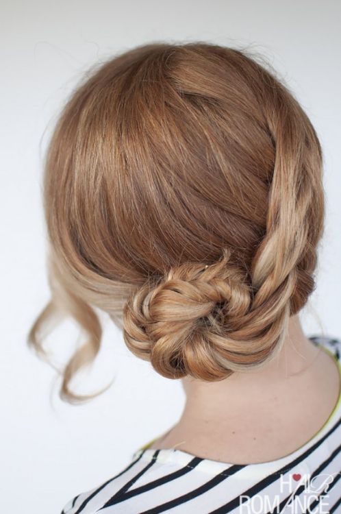 Rope braids are pretty on their own, but when you add the fishtail style, it looks even better. The elegant twisted look moves from one side of the head to the other, twisting up into an updo.