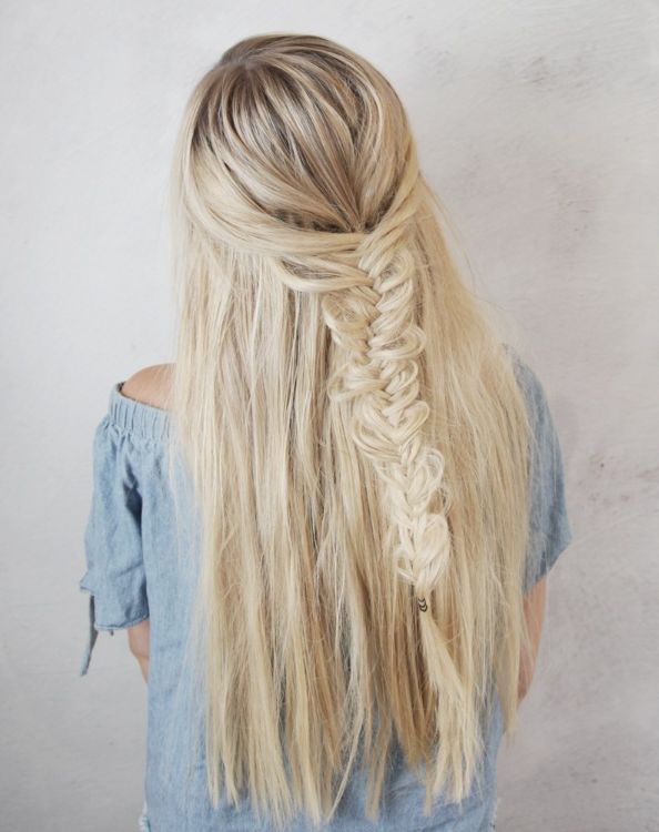 1. Half-up fishtail braid